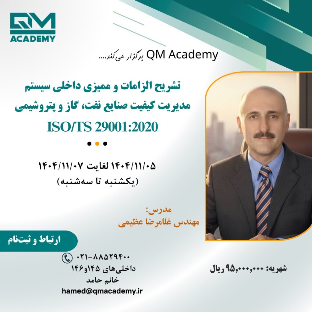 تشریح الزامات و ممیزی داخلی سیستم مدیریت کیفیت در صنایع نفت،گاز و پتروشیمی ISO/TS29001:2020